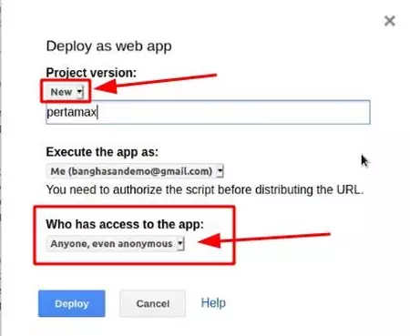 Execute the app as: biarkan saja me (email@dgmail.com)Who has access to the app: pilih anyone, even anonymous