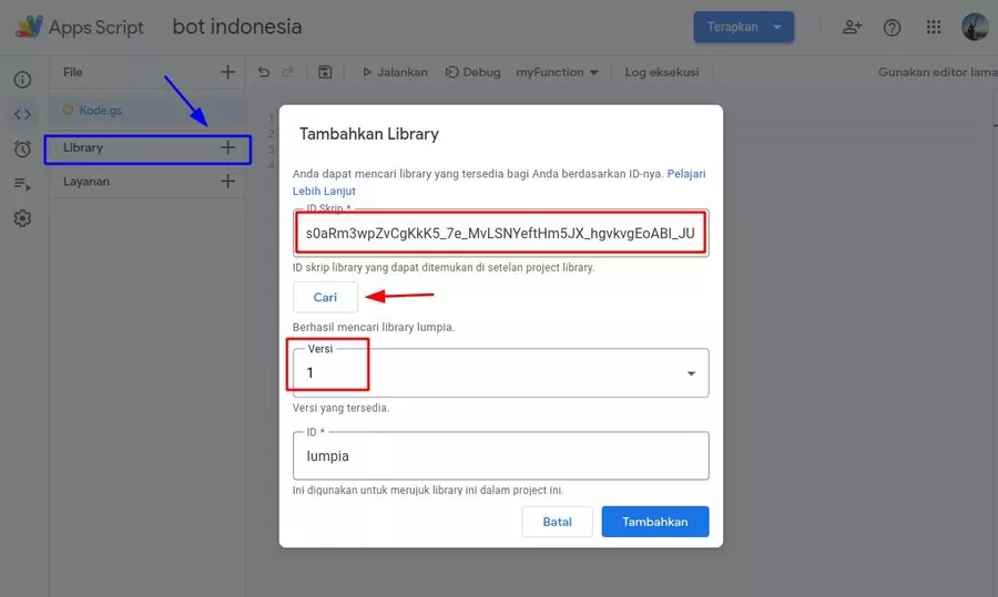 Penjelasan detail bisa dilihat pada membuat proyek baru pada Google Apps Script